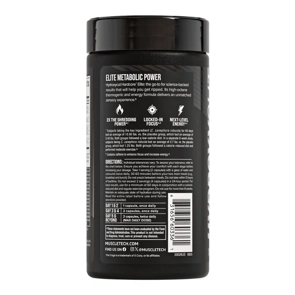 Hydroxycut Hardcore Elite de Muscletech é um suplemento dietético desenvolvido para facilitar a rápida perda de peso e melhorar o desempenho atlético de forma eficaz e segura.