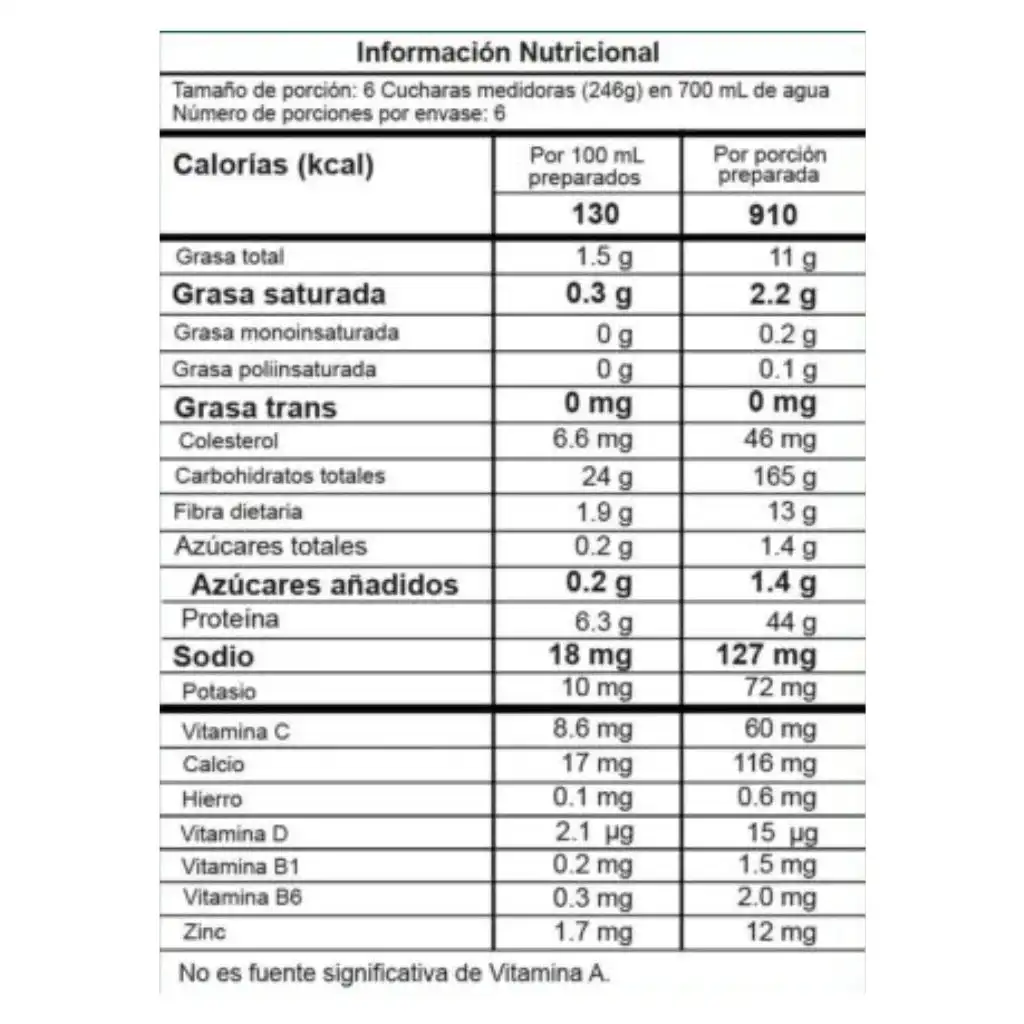 INGREDIENTES: Farinha de Aveia, Palatinose, Amilopectina, Proteína Whey, Caseinada de Leite, Sabor Idêntico ao Natural, Carboximetilcelulose CMC (Estabilizante), Lecitina de Soja (Estabilizante), Goma Xantana (Espessante), Adoçante Natural (Stevia), Dióxido de Silício (Anticompactante) (1000 mg/kg), Ômega 3, Vitamina C (Ácido Ascórbico), Lactase em pó, Citrato de Zinco, Vitamina B6 (piridoxina), vitamina B1 (tiamina), vitamina D3.