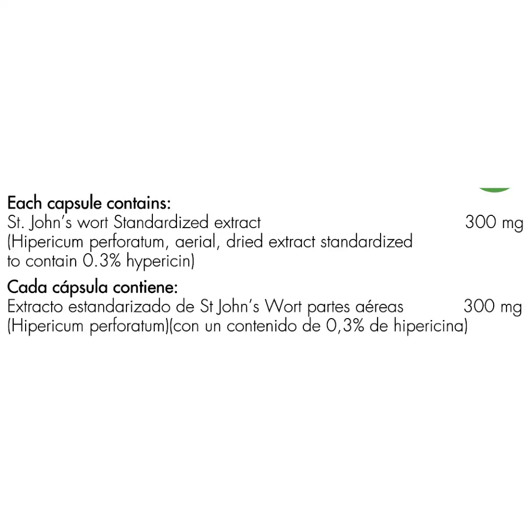 Extrato padronizado de partes aéreas de erva de São João: 300 mg, (Hypericum perforatum) (com teor de 0,3% de hipericina).